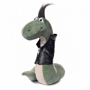 Вот вам Змей Рокки – рок-звезда среди мягких игрушек! Он только что сошел со сцены после выступления на рок-концерте. Большие глаза полны энергии и жизни, а добрая улыбка способна растопить сердца даже самых жестких фанатов металла. Он одет в черную кожаную рокерскую жилетку, которая подчеркивает его бунтарский характер. И его ирокез и белая борода - просто чудо! Ведь у Змея Рокки корни зеленеют от рок-н-ролльной энергии, которую он несет в каждом своем рокабилльном шаге!