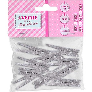 264840 - Набор прищепок дерев. deVENTE "Silver" 10шт,45*8мм,серебристые металлик 8120405
