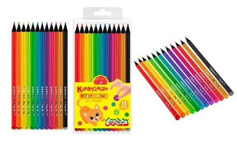 Карандаши пластик. 12цв. Каляка-Маляка КПКСКМ12 кругл.корп.,стразы,пласт.уп.