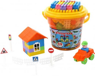 Конструктор "Строитель" (84 элем. в ведре "Макси" с крышкой) направлен на обучение ребёнка базовым умениям по конструированию различных моделей. Яркая расцветка деталей конструктора помогает малышу познакомиться с цветами и развивает воображение. В ходе такой игры улучшается мелкая моторика рук ребёнка, он учится усердию и усидчивости. Конструктор позволяет собирать автомобили, строить дома, обустраивать целые улицы с деревьями и дорожными знаками... Конструкторы способствуют развитию фантазии, воображения и мелкой моторики рук ребёнка. Благодаря этому игра становится ещё интереснее. Конструктор упакован в ведро «Макси» с крышкой, что делает хранение и перемещение элементов конструктора удобным. Размер в упаковке: 25,8х24,1х25см