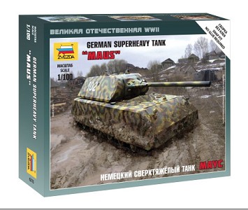 Модель немецкого сверхтяжелого танка "Маус" в масштабе 1/100 станет достойным дополнением к любой коллекции миниатюрной бронетехники. Внешний вид модели в точности соответствует прототипу, а тщательно рассчитанные при помощи новейших технологий детали превосходно стыкуются. Как обычно, данная модель собирается "на щелчок", так что использовать при сборке клей не потребуется. В настольной военно-тактической игре "Великая Отечественная" модель танка "Маус" пополнит ряды немецкой армии в качестве подразделения тяжелой бронетехники.