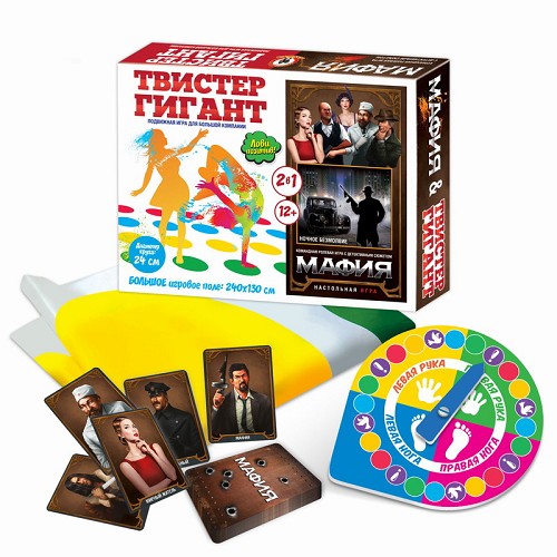 Игра Твистер Гигант+Мафия/Ночное безмолвие (2-в-1) 12+ (поле 130*240см) 03660 (Р