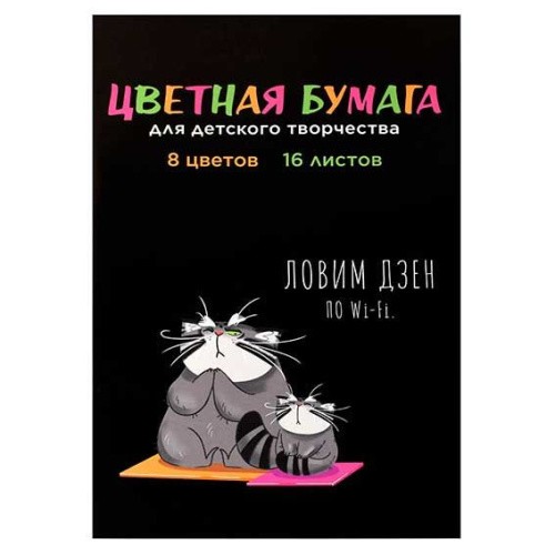 Бумага цв. двухстор. А4 16л. 8цв. ФЕНИКС "Кот на дзене" 69950 на скобе