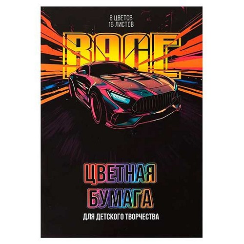Бумага цв. двухстор. А4 16л. 8цв. ФЕНИКС "Гонка" 69954 на скобе