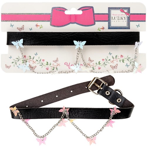 Lukky Fashion Чокер эко-кожа с цепью и бабочками свет.в темноте,застежка-ремень