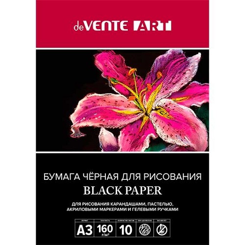 Папка для рисования А3 10л. deVENTE "Art" 2135402 бум.чёрная,160 г/м2,пласт/уп.