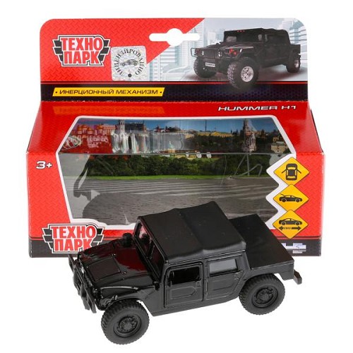 Машина Технопарк металл. Hummer H1 Пикап черный (12см) откр.дв. в/к SB-18-09-H1-