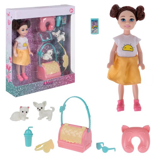 Кукла Alisa Little Love (14,4см) блонд, с косич, с питомцем и переноской, в/к Т2