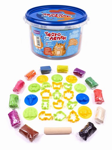 Тесто д/лепки (10цв*70гр,10форм,скалка) в ведре П108 (Развивашки)