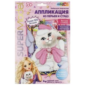 Аппликация из перьев и страз MultiArt (17x23см) Стильная кошка FEATHGEM-SMANIM