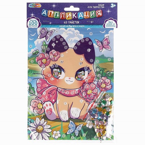 Аппликация из пайеток MultiArt (17х23см) кавай, Котик SEQPACK-112289