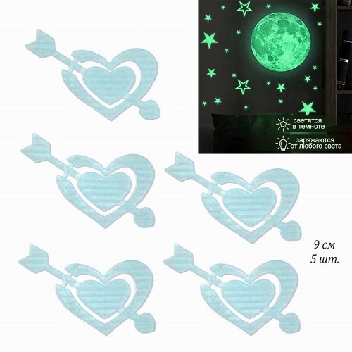 Наклейка светящ. 12*16см Сердца Р22072-21 Кн22072-21
