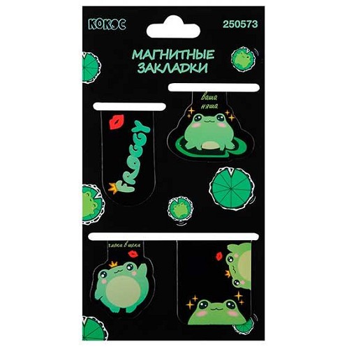 Закладки магнитные КОКОС "Frog style" (4шт) 250573 картон,25*55мм