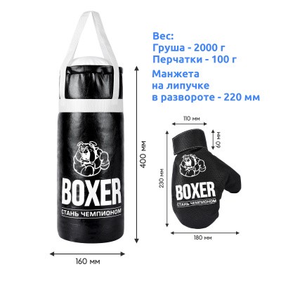 Боксерский набор №2А 40см (груша-экокожа,перчатки-текстиль) 97818 черный