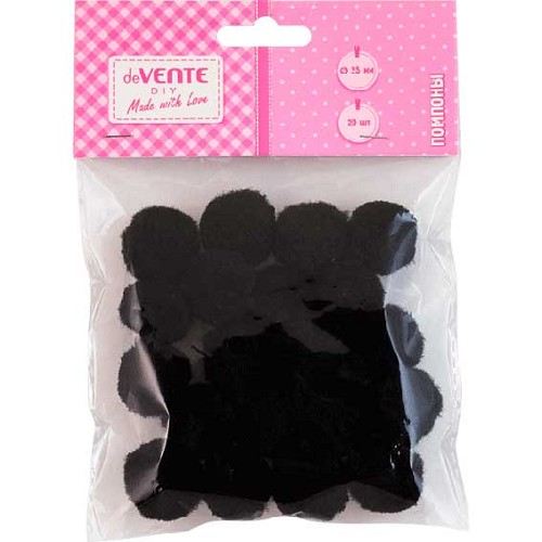 Набор д/творчества deVENTE "Помпоны" 8000025 20шт.,25мм.,чёрные,пластик.пакет
