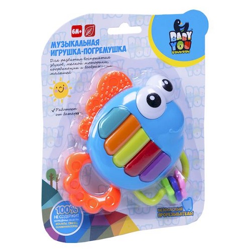 Bondibon Игр.разв.погрем.пласт, Рыбка-пианино муз,на бат,CRD ВВ3920