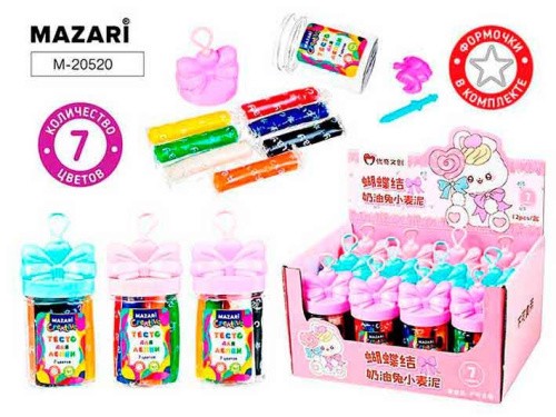 Тесто для лепки 7цв. 14гр. MAZARI "Бантик" M-20520 формочки (2шт.),пласт.банка