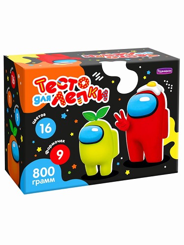 Тесто д/лепки (16цв*50гр+9форм,скалка) в/к П129 (Развивашки)