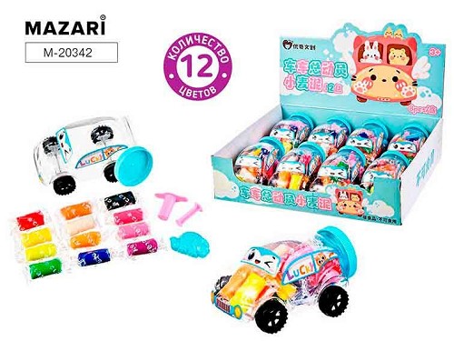 Тесто для лепки 12цв. 9,8гр. MAZARI "Машинка" M-20342 формочки (2шт.),пласт.бан