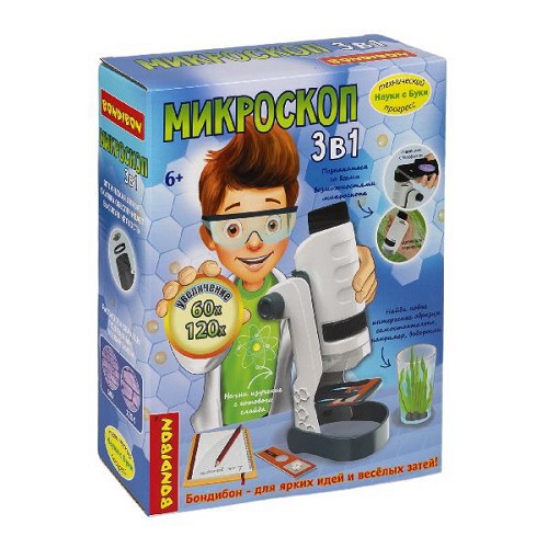 Вondibon Французские опыты Науки с Буки Микроскоп 3-в-1 (увелич.60X,120X) ВВ5655
