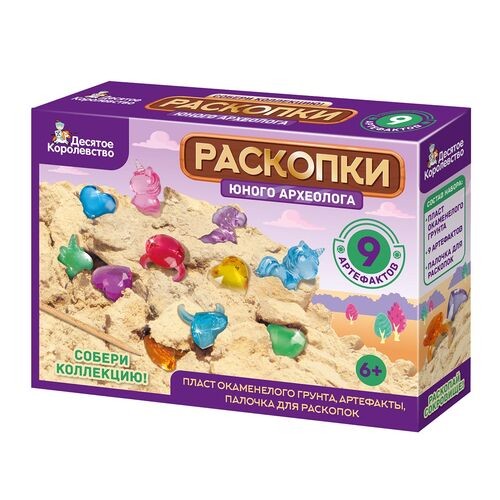 Набор Юного археолога Раскопки 9 артефактов (5сердец,1единорог,3кольца) 05117 (Д