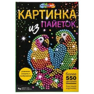 Картина из пайеток MultiArt (26х18см) Попугаи SEQPIC-PARROTS-110706