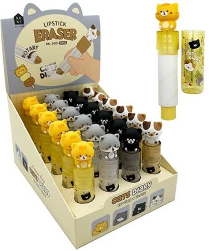 Ластик INTELLIGENT KUKI "Коты" DL-179/DI-212 выдвижной,90*20мм,футляр с фигуркой