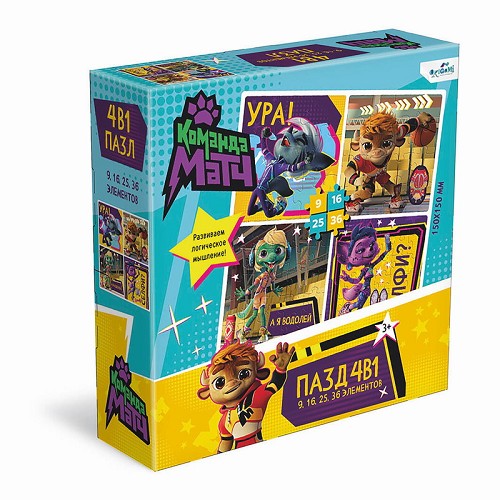Пазлы 4-в-1 (9-16-25-36эл) Команда МАТЧ Лучшие друзья 08294 (Оригами)