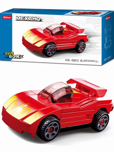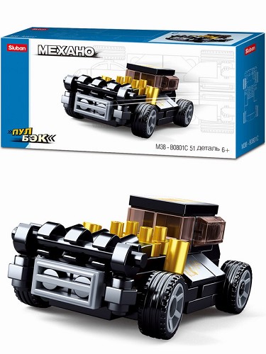 Мини-конструктор M38-B0801C Механо Гоночная машинка-3 инерц. (51дет) в/к