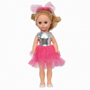 Кукла Мила Праздничная 1 станет прекрасной подругой для вашего ребенка. Ее современный образ принцессы с длинными, волнистыми волосами и нарядном платье придется по душе вашим детям У Милы красивые глазки, пушистые ресницы и длинные мягкие волосы, которые можно завивать, расчёсывать и укладывать в разные причёски, меняя образ куклы. В комплект одежды коллекции «Праздничная» входит: нарядное, отрезное по линии талии платье из трикотажной парчи и сетки. Голову куклы украшает бант, на ногах туфельки. Элементы костюма, которые легко снимаются и надеваются, погрузят вашего ребенка в мир сюжетно-ролевых игр, в процессе которых развивается мелкая моторика и творческое воображение ребёнка. Рост куклы 38,5 см. Кукла не озвучена. Глаза вставные закрывающиеся. Тело куклы стройное и пропорциональное. Ручки и голова выполнены из эластичного, приятного на ощупь винила, а туловище и ноги из пластмассы. Соответствует Техническому регламенту Таможенного Союза о безопасности игрушки.