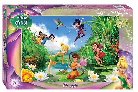 Пазл «Феи» состоит из 360 деталей. На картинке мы видим шестерых фей — они играют с птичками и бабочками, смеются и резвятся посреди красивого пруда.