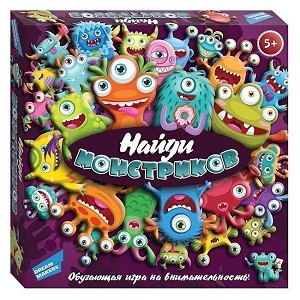 Игра "Найди монстриков" поможет отлично провести время детям и взрослым. Суть игры заключается в том, что участники должны как можно быстрее отыскать нужных монстриков среди множества других, заработав при этом карточку с этим монстром. Победит тот, у кого окажется больше всех карточек. Такая игра развивает зрительную память, внимание и скорость реакции. Состав: картон, пластик Комплектация: игровые карточки -120 шт., игровое поле- 1 шт., фишки игральные - 12 шт., правила Возраст: от 5 лет Упаковка: коробка