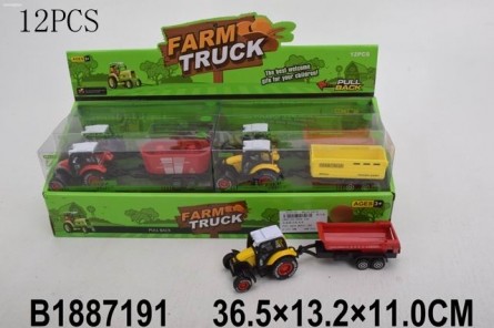 150303 - Машина инерц.металл. Трактор с прицепом №4 в/к (36,5см,12шт/шоу-бокс) 1887191