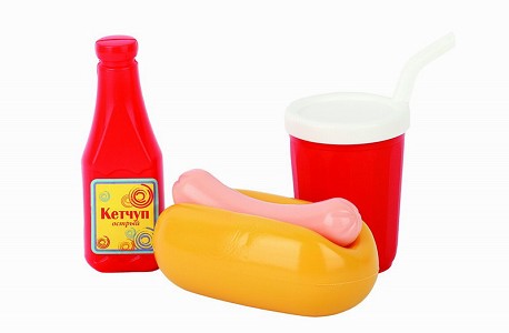 Игровой набор "Хот дог" 3 предмета- кетчуп, хот дог, стакан с трубочкой.