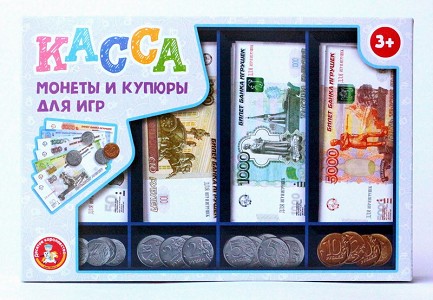 Состав набора: • купюры – 108 шт.(11х 5 см) • монеты – 52 шт. Для детей старше 3 лет.