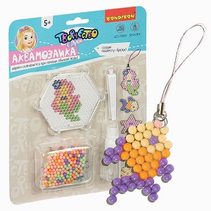 Набор для творчества Аквамозаика - это все необходимое для создания фигурок волшебного подводного мира: русалочка и ее друзья - 5 фигурок для девочек в одном наборе. Самые любимые поделки можно носить с собой как брелок! Для создания поделки разложите цветные шарики по трафарету, слегка смочите их водой, дайте им высохнуть не менее 20 минут, и готовая фигурка из бусин застынет! Состав набора: 400 цветных бусин, пластиковая основа, распылитель воды, карточки-трафареты, пинцет, подвески для создания брелоков.