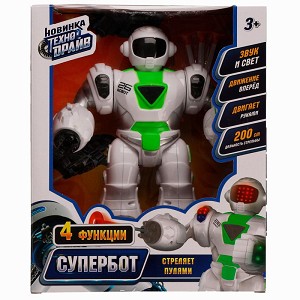Робот «Супербот» ТМ «Технодрайв» станет прекрасным подарком для маленького любителя робототехники: - световые эффекты - звуковое сопровождение - движение вперёд - двигает руками - дальность стрельбы: 200 см
