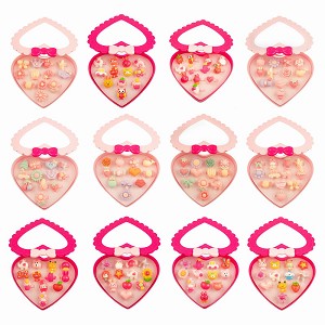 Набор пластмассовых колечек для девочек в коробке в виде сердца.