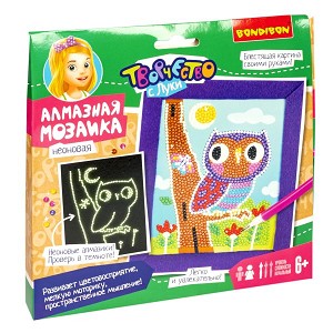 Совушка является символом знаний и мудрости. Развивайте таланты детей вместе набором для творчества АЛМАЗНАЯ МОЗАИКА "СОВУШКА" от Bondibon Алмазная мозаика - блестящий вид творчества! Красочные переливы каждого алмазика - фрагмента мозаики превращают творческий процесс в настоящее волшебство! Выкладывание страз прекрасно успокаивает, способствует снижению стресса, а также развивает мелкую моторику и цветовосприятие. Такое творчество привьет ребенку усидчивость и терпение, поможет развитию воображения. Переносите стразы на выбранный участок картины, используя аппликатор. В результате получится очаровательная картина - чудесный подарок своими руками! Кроме того, это необычная мозаика - неоновые алмазики белого цвета светятся в темноте! В наборе для поделок основа с липким слоем, цветные стразы, карандаш-аппликатор, лоток, кусочек силикона, сборная рамка, инструкция. Серия Творчество с Луки – отличный подарок для творческих девочек и мальчиков! Возраст 6+
