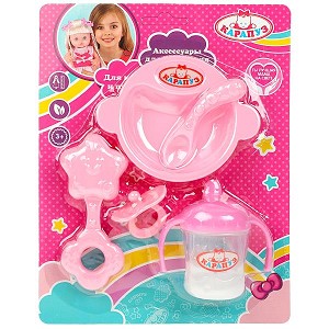 Набор для пупсов и кукол ТМ «Карапуз» 5 в 1: - погремушка - поильник - тарелка - ложка - соска