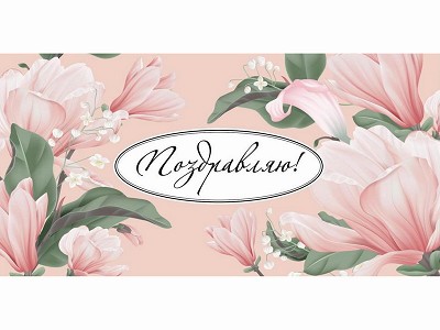 239681 - Конверт д/денег Поздравляю! (розовые цветы) 1-05-0267