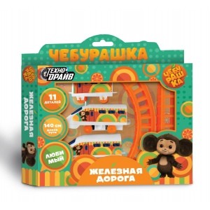 Мультяшная железная дорога «Чебурашка» ТМ «Технодрайв» станет отличным подарком для маленьких поклонников известного фильма: - длина пути 140 см - яркий дизайн - любимый персонаж - легко собирается - 11 предметов в комплекте