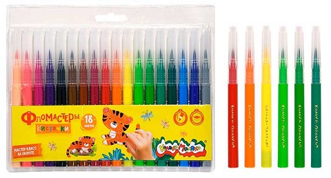 243026 - Фломастеры-кисти 18цв. Каляка-Маляка ФККМ18 кругл.,легкосмыв.,блист.уп.