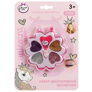 Набор косметики для девочек ТМ «Милая леди» непременно понравится маленькой моднице: - тени для век с блёстками 4-х цветов: фиолетовый, серебристый, розовый, золотой - аппликатор для нанесения макияжа - складной футляр - безопасно для детей