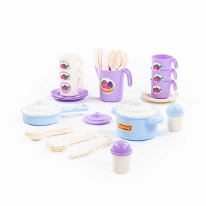Накрыть красочный стол для любимых кукол сможет любая обладательница набора детской посуды "Настенька". С помощью игры с детской посудой девочка приобретает навыки юной хозяйки, идентифицирует себя с образом Мамы.