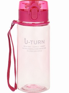 Каталог > Бутылка д/воды пласт.с крышкой-защёлкой и ремешком Движение,U turn (400мл) розов