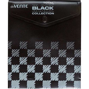 255370 - Папка-конверт на кнопке А6 deVENTE "Total black" 3071335 непрозр.чёрная с рис.,1