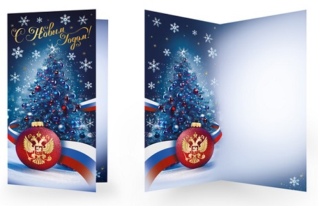 259369 - Открытка евроформата С Новым годом! С Российской символикой Без текста (золотая