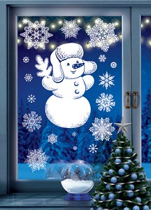 Наклейки А3 Снеговик со снежинками (белила,многораз) Н-16485