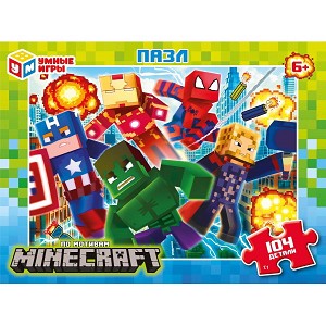 Классические пазлы в коробке «По мотивам Minecraft» ТМ «Умные игры» - отличная развивающая игра для детей: - 104 детали - размер готовой картинки: 237 х 330 мм - яркие цвета - популярная тематика - все элементы хорошо и плотно соединяются друг с другом